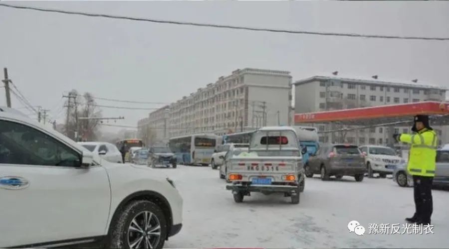 棉衣早已加身,馬路上的警察叔叔也穿上厚厚的棉服了,那鮮艷的熒光色成為白茫茫一片世界里亮麗的一道風(fēng)景線!