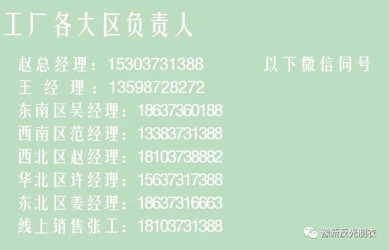 河南新鄉(xiāng)豫新反光服飾有限公司 版權(quán)所有 Powered by RRZCMS豫ICP備17006469號-2